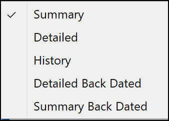 - Select Back Dated Summary if you want to print the report backdated without all of the invoice details. Select the Condensed checkbox to show a single line per customer.