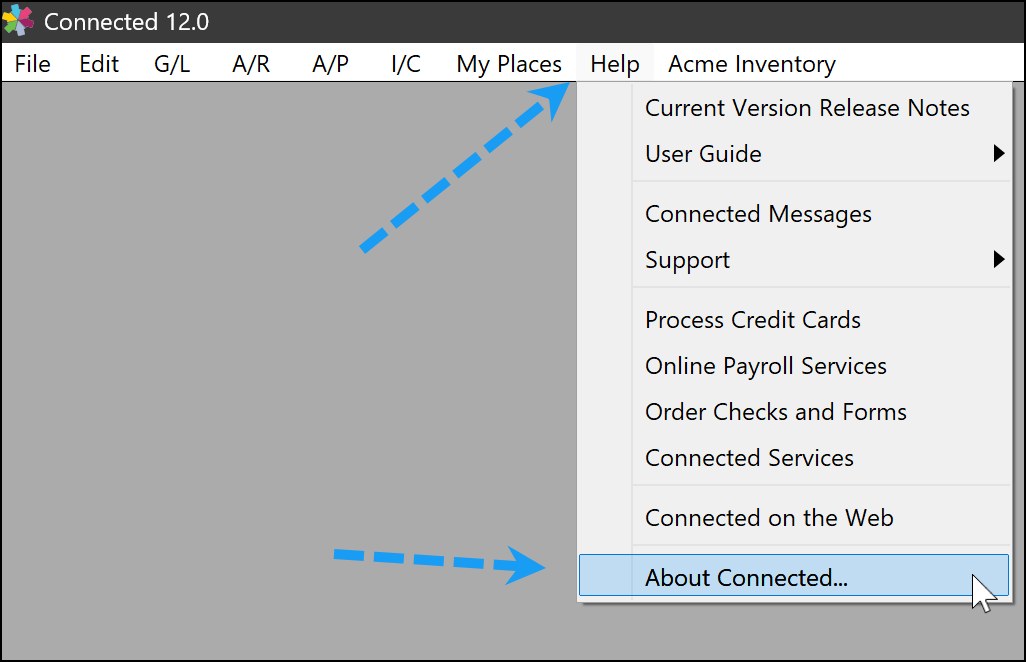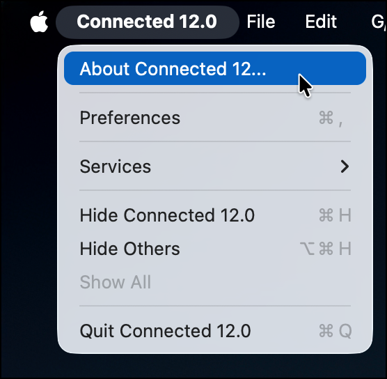 3. On a windows PC, select "About Connected" from the Help Menu.