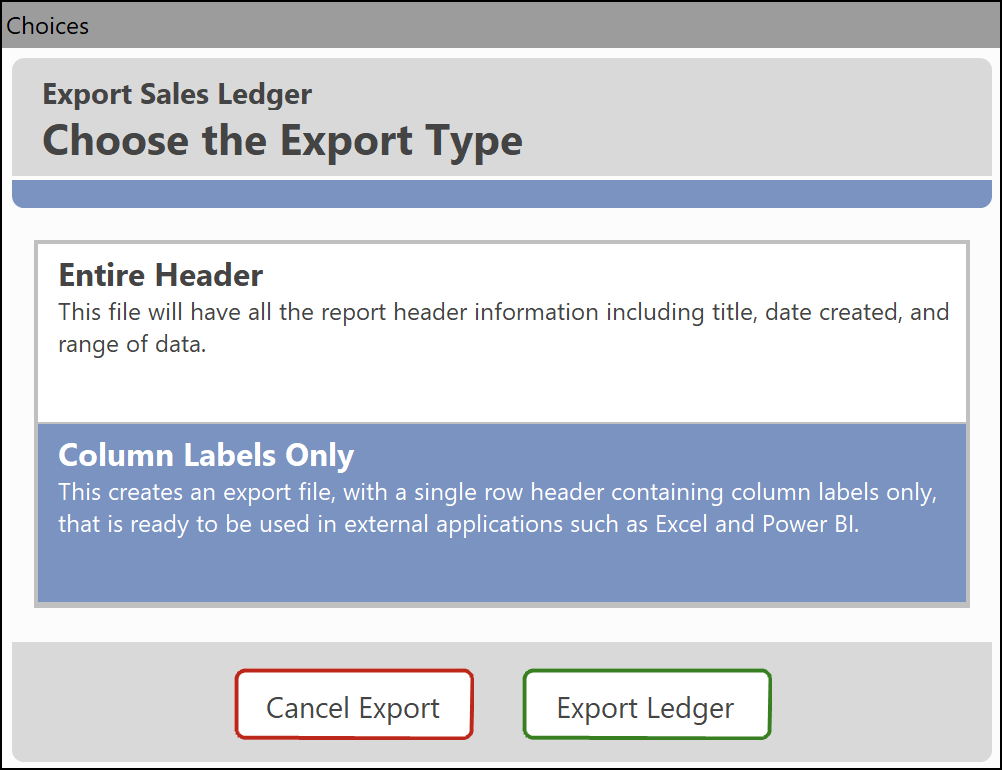 Ledger and query windows have all been equipped with new export options. Each window is now has the same copy/select option that is in My Reports. The following options are offered: