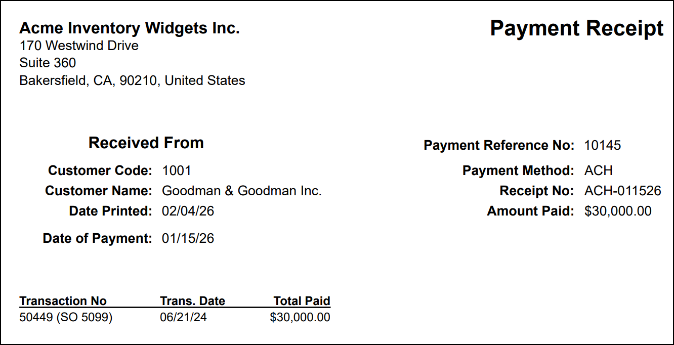 Payment Receipt Example: