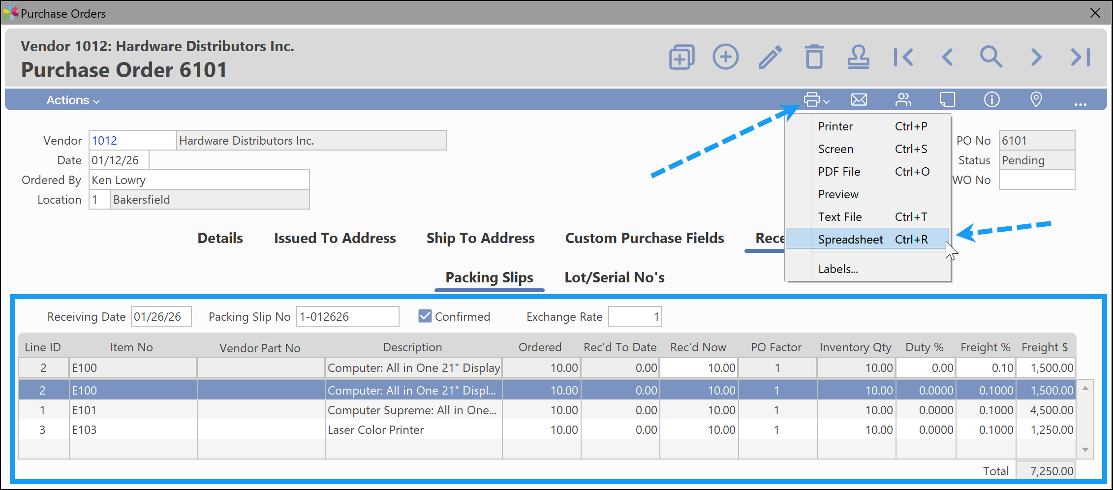 Exporting a Purchase Order and/or Receiving to Spreadsheet